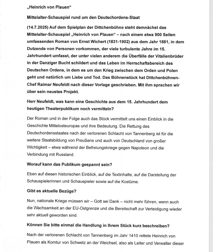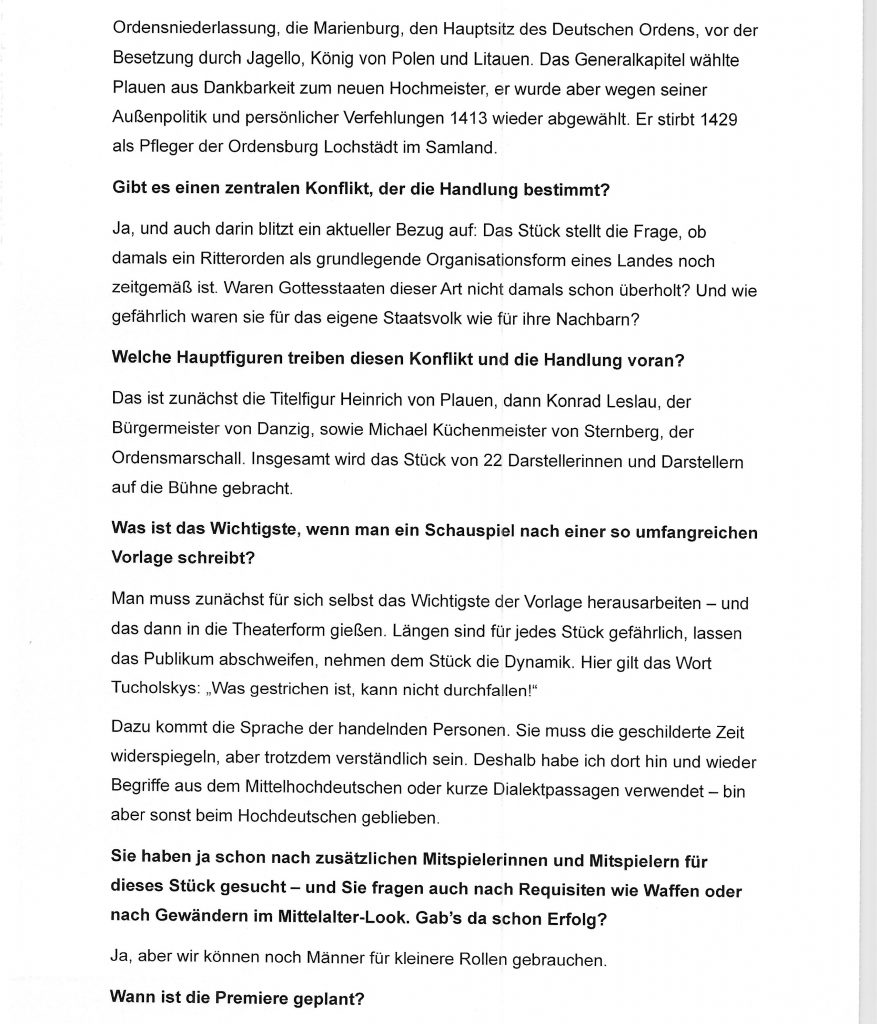 Die Textvorlage für das Stück verfasste Hedwig von Löhlöffel, einstmals Gutsherrin in Ostpreußen, das heute zu Russland gehört. Der Text wurde mehrfach überarbeitet, die jetzt aufgeführte Fassung schrieb Markus Arendt, der ein Elmshorn auch Regie führt.
